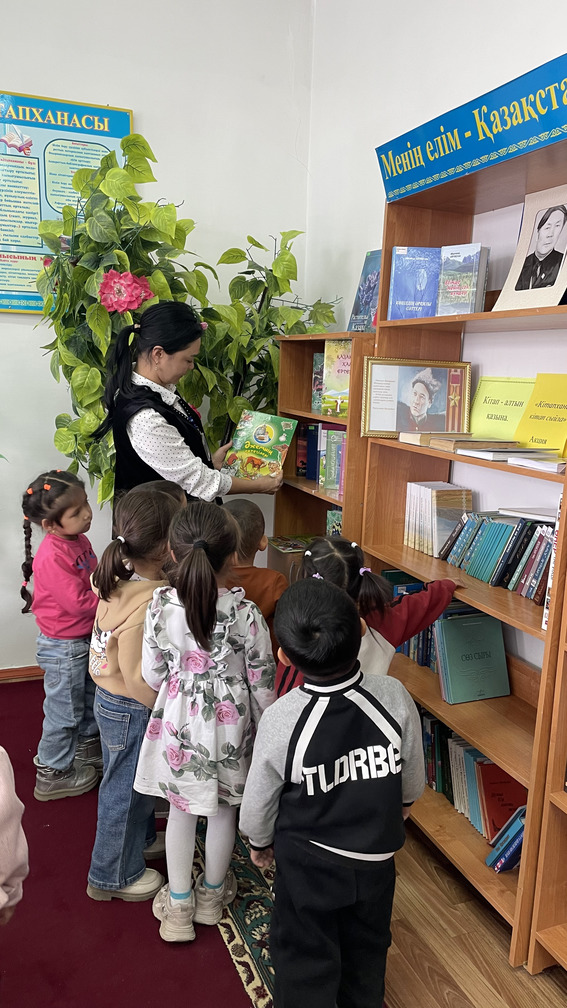 "Жаңаталап" бөбекжай - бақшасының" "Балдаурен" ересек тобының тәрбиеленушілері жылдық жоспарға сәйкес №26 Жаңаталап орта мектебінің кітапханасына серуенге барып танысты.